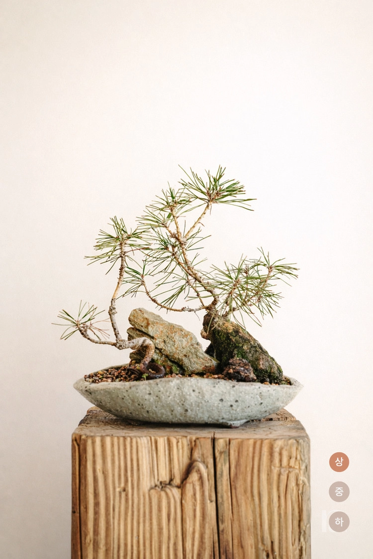 자연석과 어우러져 작은 화분 안에서도 깊이 있는 풍경을 느껴보세요.