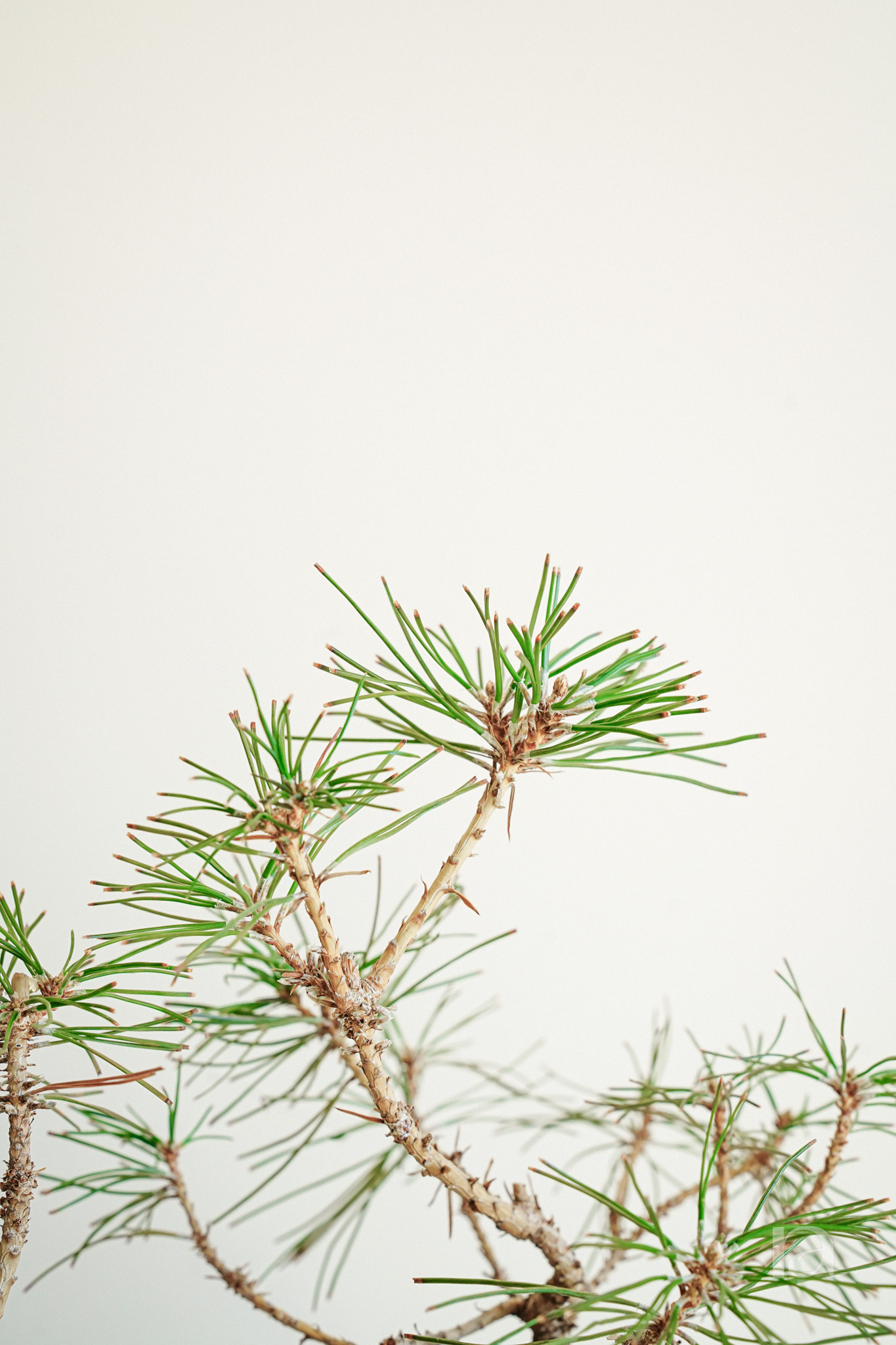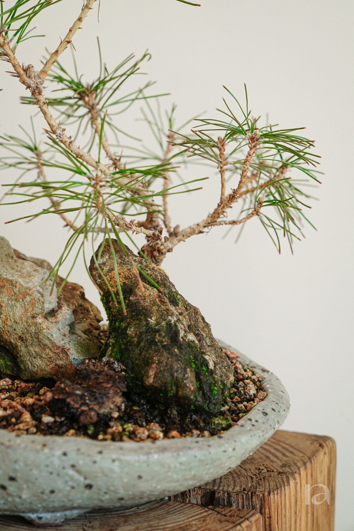 굽이진 가지와 층층이 쌓인 솔잎이 어우러진 해송 합식 분재입니다.